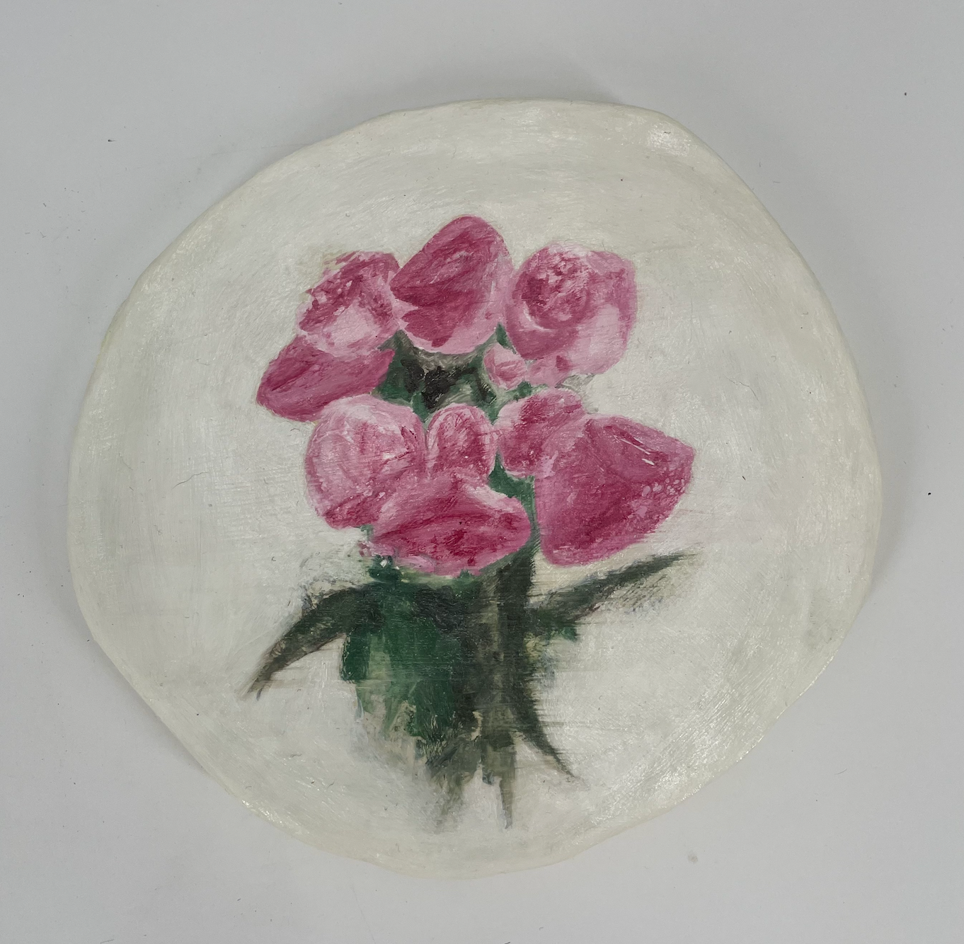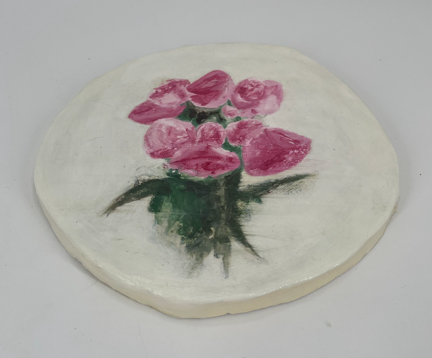 Surrounded by Love / Acrylic Paint, Ceramic Plate (airdry clay) / 8 cm x 8 cm x 1 cm