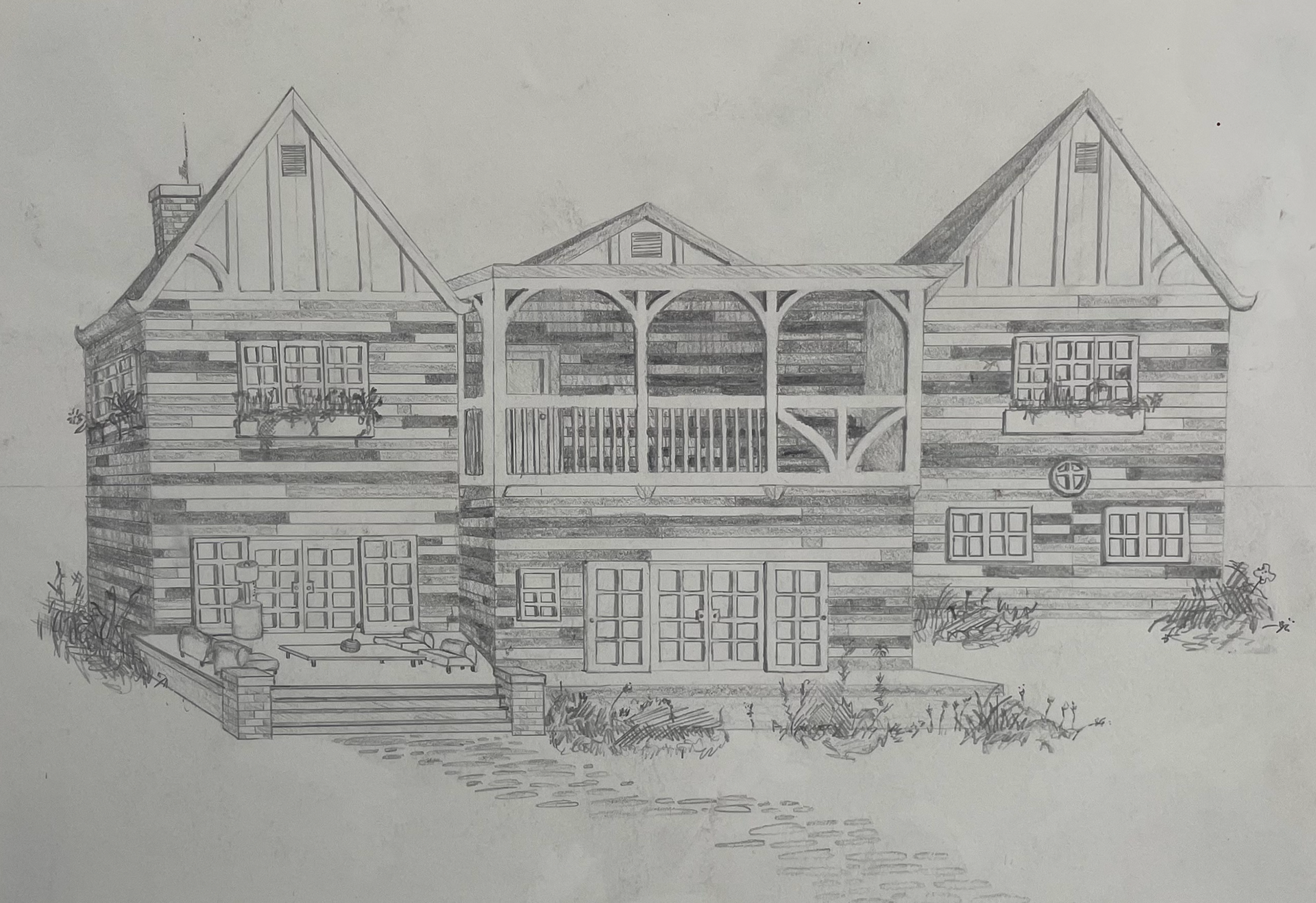 Blush pink wood panels hug a full frame of tall ceilings, sectional couches, and fireplaces. In her dream, grass reaches her ankles, a mountain towers over her shoulders, and trees are the envelopes to her love letter of life. The sketch shows what her life could be, not what it is. The letter concerns sightings of black bears and crème brûlée coffee in the frosted mornings. The envelope is not yet sealed.